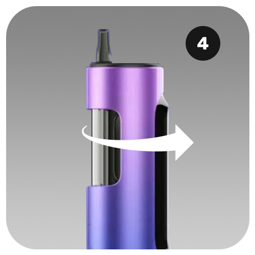 Replace the cap and twist the barrel containing the pods. Align the flavour you want to vape with the arrow.