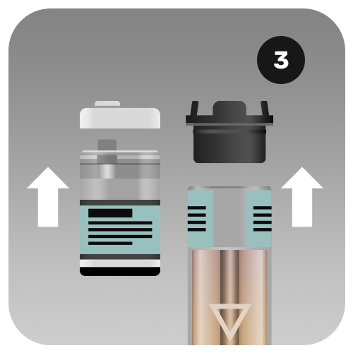 - Take off the rubber caps from both the prefilled pod and refill container.