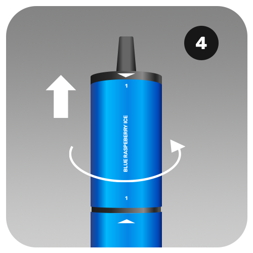Choose which flavour you want to vape by lifting and twisting the barrel so that the flavour aligns with the arrow.