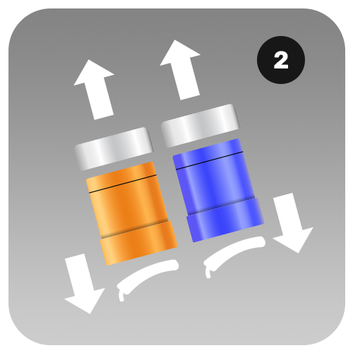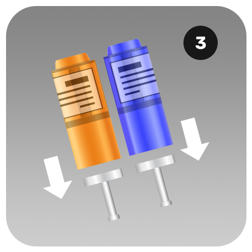 - Press each pod and its matching refill container together, matching the colours to pair correctly.
