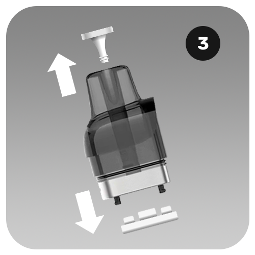 Pull the silicone plugs out from the top and bottom of the 2ml pod.