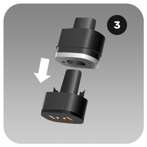 Press the 2ml prefilled pod and 10ml refill container together until you hear a click.